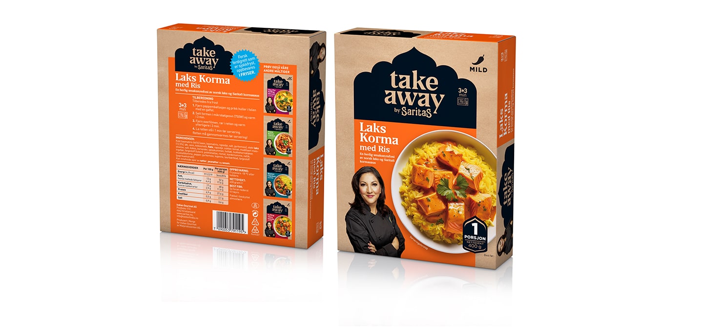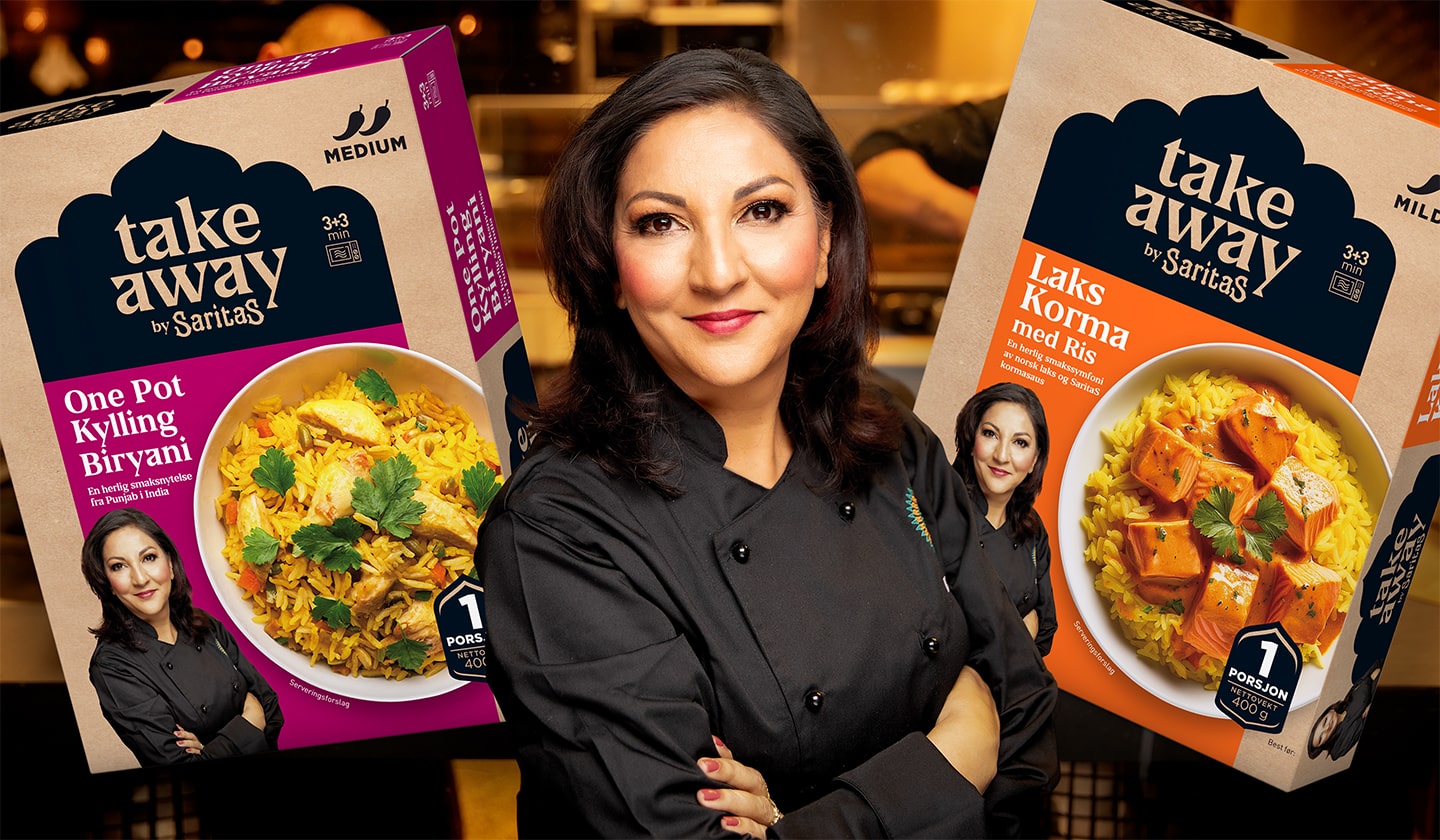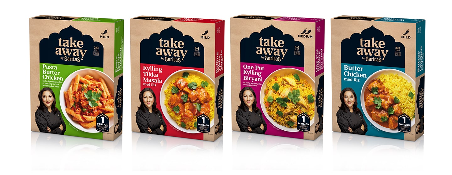 After experiences with Saritas chilled ready meals and the popularity of food delivery from their own restaurant in Kristiansand, Indian Gourmet decided to launch a new brand, "take away by Saritas“, offering chilled and frozen ready meals. In addition to traditional Indian dishes, the portfolio also includes fusion cuisine with Norwegian and Italian influences.